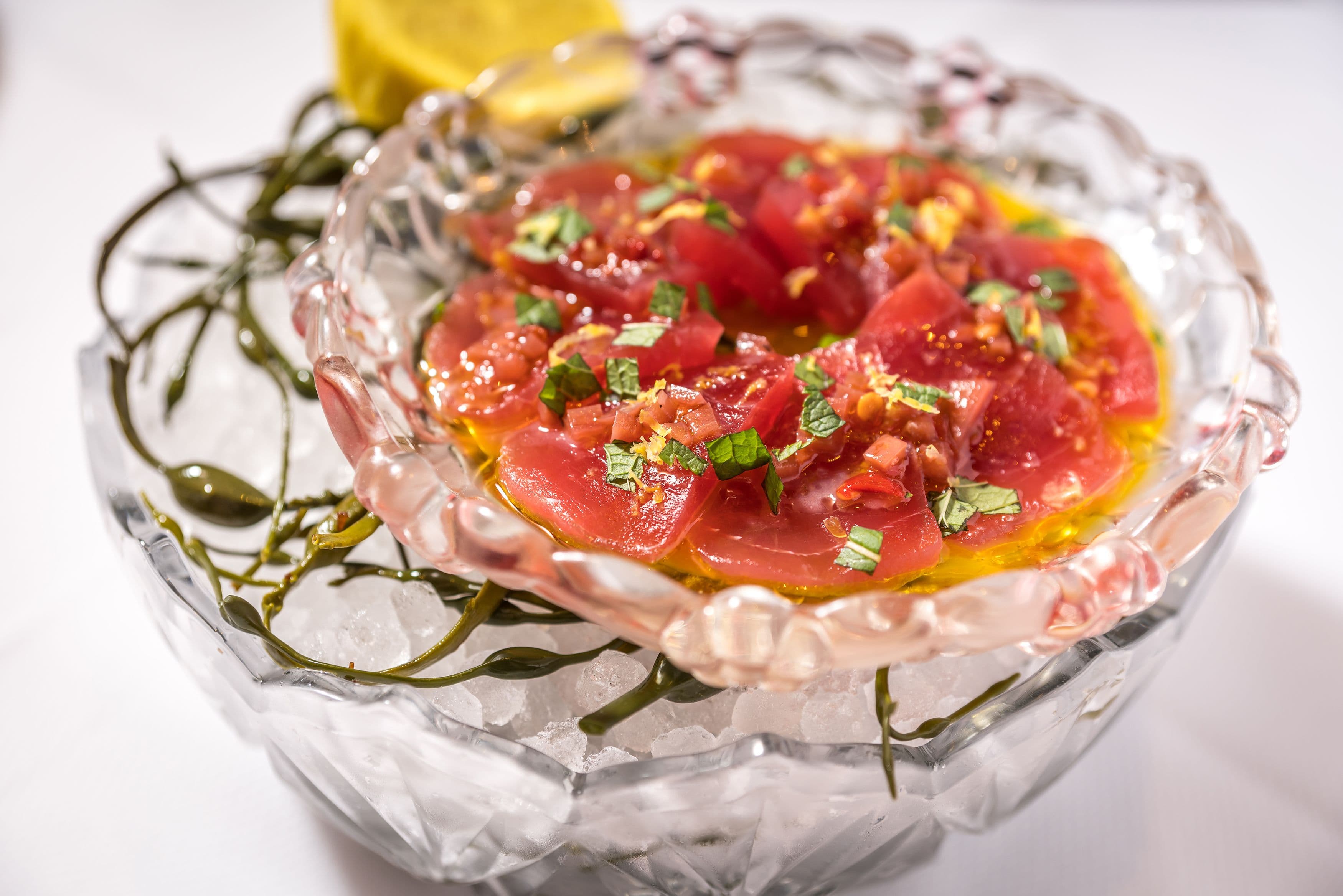 The Carbone menu features classic Italian-American dishes prepared with only the most exceptional ingredients and fine-dining techniques. Favorites like Caesar Salad alla ZZ, Carpaccio Piemontese, Baked Clams, and Veal Parmesan reach thrilling new heights.